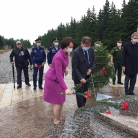 Утром депутаты горсовета приняли участие в церемонии возложения цветов к скульптурам «Сибирячка с сыном» и «Солдат-победитель».