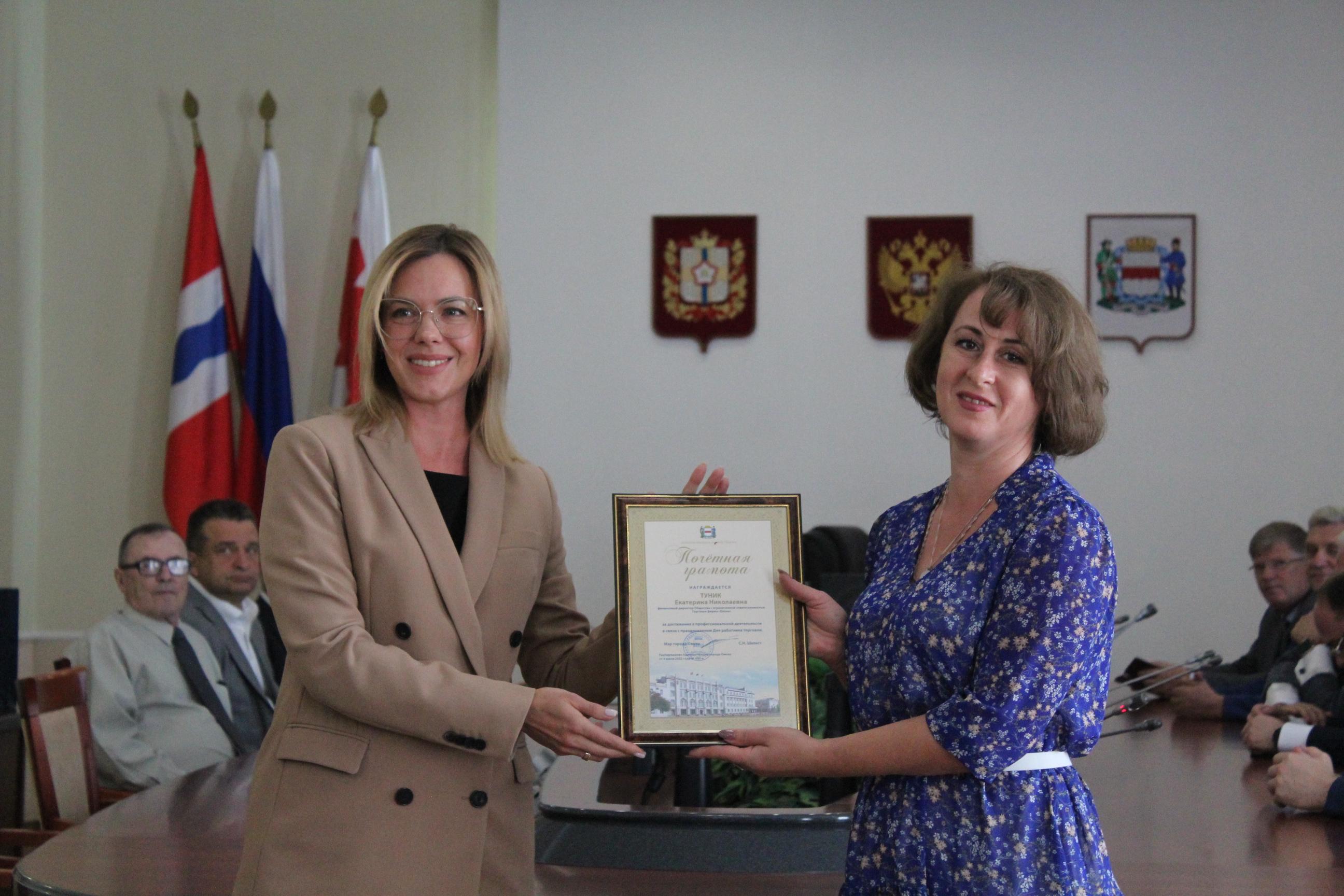 Торжественное мероприятие прошло в администрации Омска. В нем приняли участие председатель Омского городского Совета Владимир Корбут, директор департамента городской экономической политики Елена Дячук и представители торговых организаций.