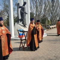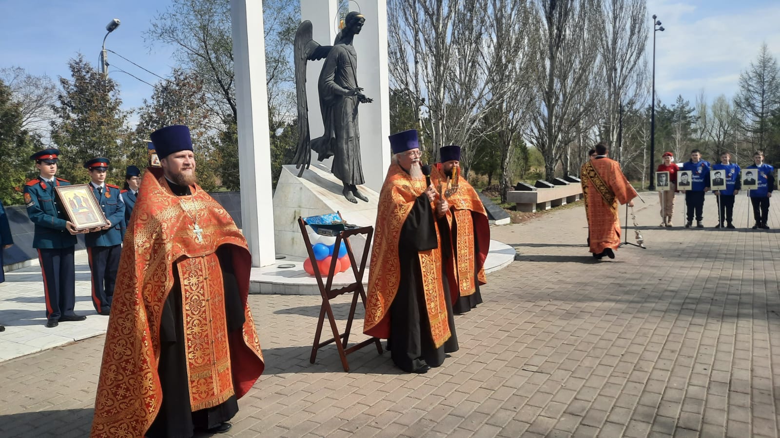 Церемония началась с поминальной службы. Затем к памятному знаку «Ангел-хранитель» были возложены цветы и венки.