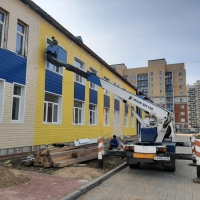 А вот строительство детского сада в Прибрежном уже на завершающей стадии. На здании детского сада завершают кровельные работы, устройство фасадов и монтируют ограждения лестниц эвакуационных выходов. Также на объекте ведутся работы по отделке помещений и устройству внутренних инженерных сетей.