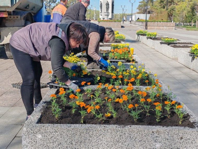 На сегодняшний день служба озеленения уже украсила городские улицы 44 842 единицами цветочной рассады. Среди посадочного материала петуньи, сальвии, колеусы, вербена, георгины, целозии и другие виды растений — большая часть выращена в муниципальной теплице.