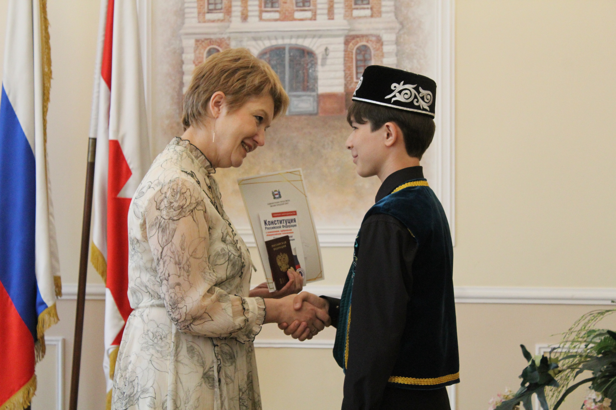 В преддверии Дня России прошла торжественная церемония вручения 14-летним жителям Омска главного документа, удостоверяющего личность. Ребята получили паспорта из рук заместителя мэра Омска Инны Елецкой и исполняющего обязанности председателя Омского городского Совета Виталия Путинцева.