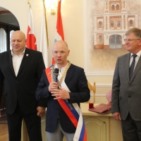 — Я рад приветствовать вас на важном и значимом событии – торжественной церемонии вручения атрибутов звания «Почетный гражданин города Омска». Сегодня мы чествуем наших выдающихся земляков, тех, кто внес заметный вклад в процветание нашего города и показал высокие результаты в спортивных соревнованиях российского и мирового уровней. Уважаемые Виталина Игоревна и Алексей Викторович! Ваши имена уже украшают страницы истории города Омска. Благодаря вашим спортивным достижениям город Омск стал узнаваемым в мире большого спорта. Восхищает ваша сила духа и безмерная воля к победе. Своим примером вы способствуете тому, что юные омичи проявляют интерес к спорту. От всей души желаю вам благополучия, мира, добра, крепкого здоровья, дальнейших спортивных успехов и талантливых последователей! — поздравил Сергей Шелест.