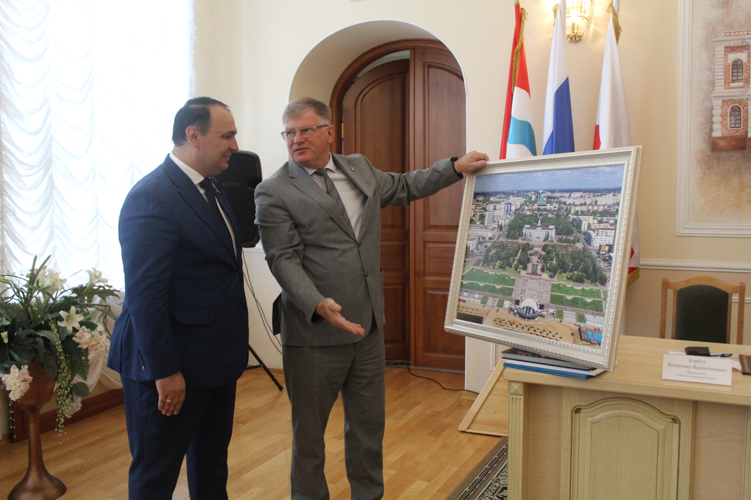 В историческом здании Омского городского Совета председатели представительных органов подписали меморандум о сотрудничестве и обменялись поздравлениями и памятными подарками об этой важной для двух городов встрече.