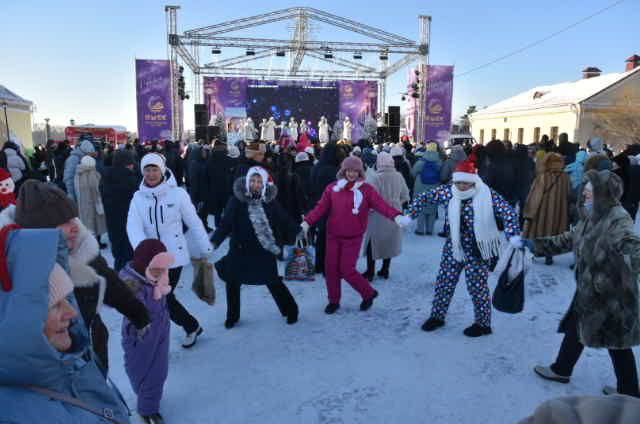 На праздничной сцене выступали артисты театра и танцевальные коллективы. Ледяная резная горка и интерактивные игры привлекли особое внимание посетителей Омской крепости.