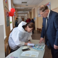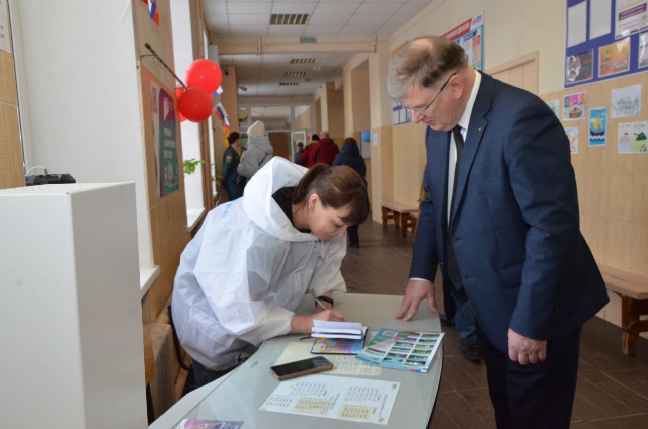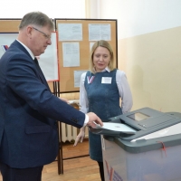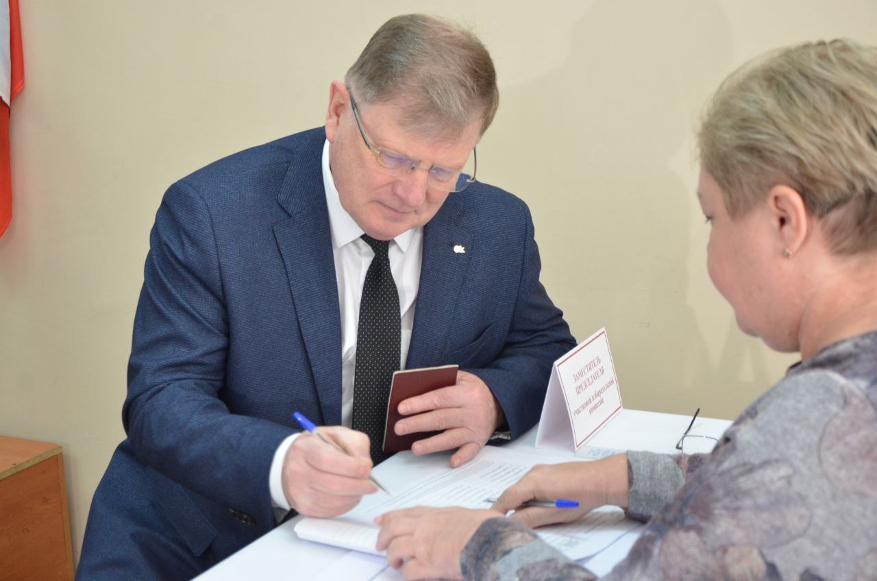 Свой избирательный бюллетень председатель Омского городского Совета опустил в урну на участке в 69-ой гимназии: