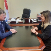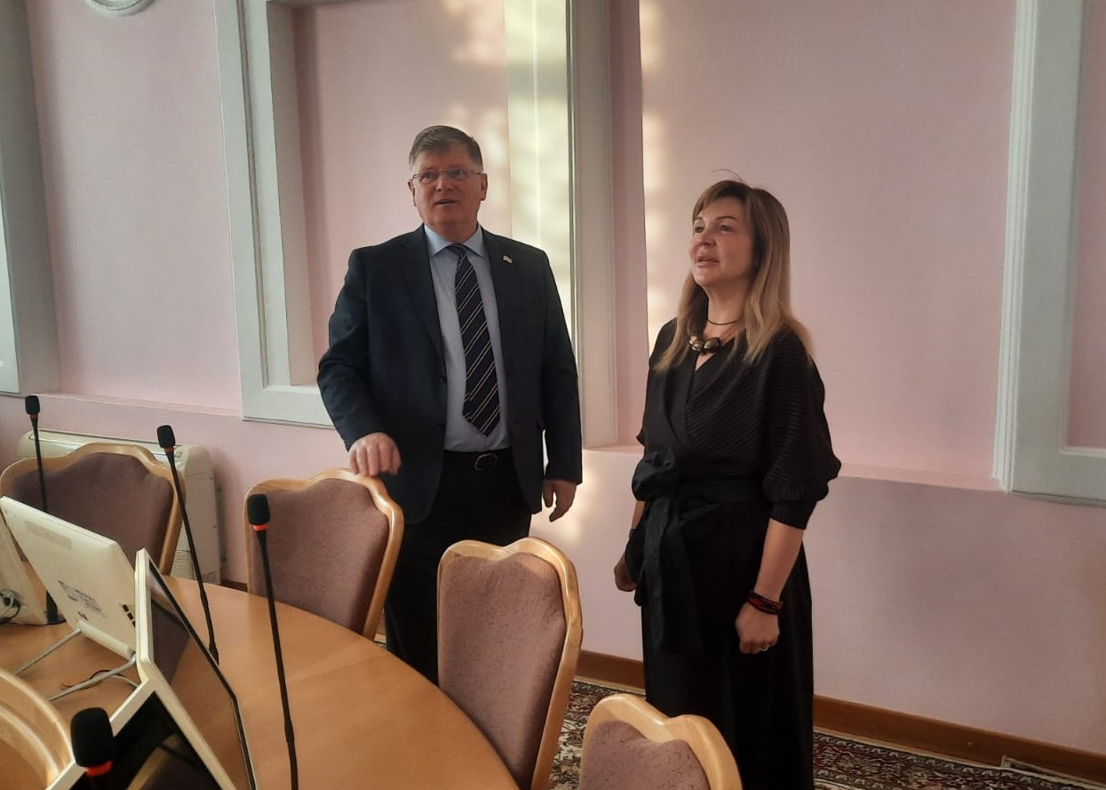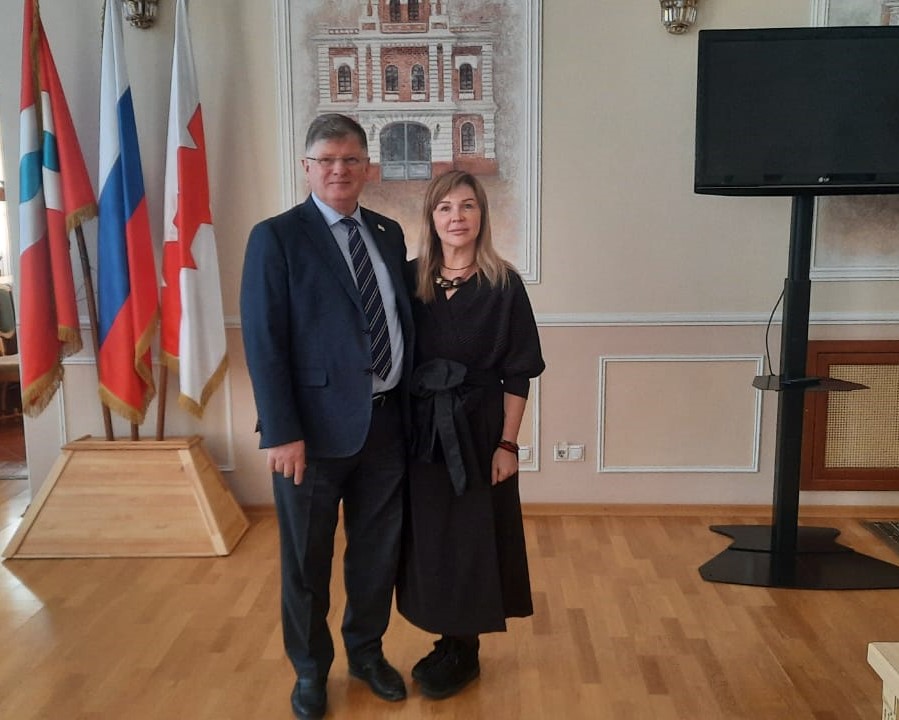 Сегодня Владимир Корбут передал Татьяне Терехиной собранный для праздника реквизит и провел экскурсию по 127-летнему зданию горсовета. Он рассказал об истории городской думы и работе депутатов.