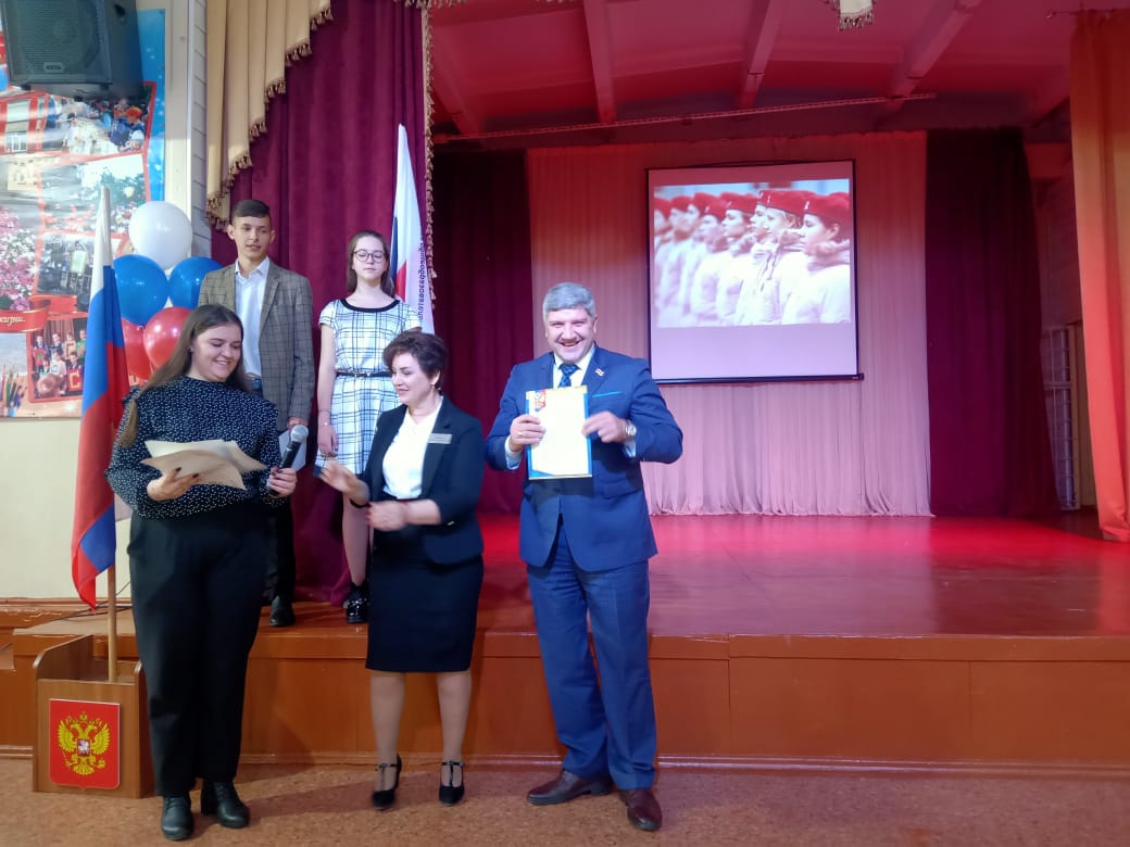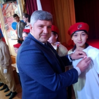 Депутат горсовета, по приглашению руководства школы, принял участие в торжественном посвящении ребят в отряд юнармейцев.