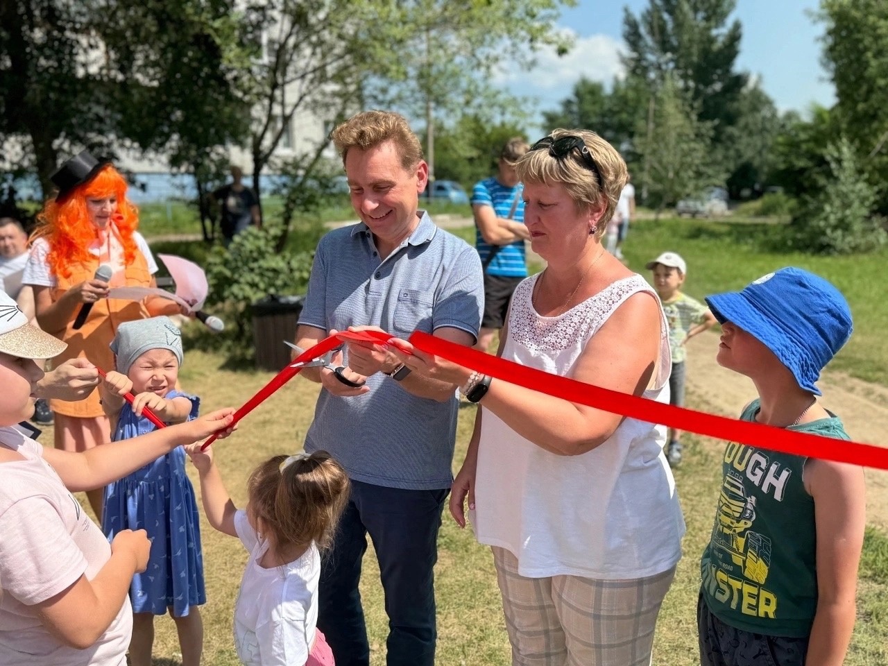 Вместе с председателем комитета территориального общественного самоуправления «Левобережный-9» Юлией Бартель разрезать красную ленточку доверили депутату Омского городского Совета Валерию Студеникину.