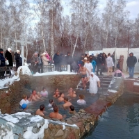 Юрий Арчибасов предоставил сегодня автобусы своим избирателям для поездки в Ачаирский монастырь. Паломники набрали освященной воды и окунулись в прорубь.