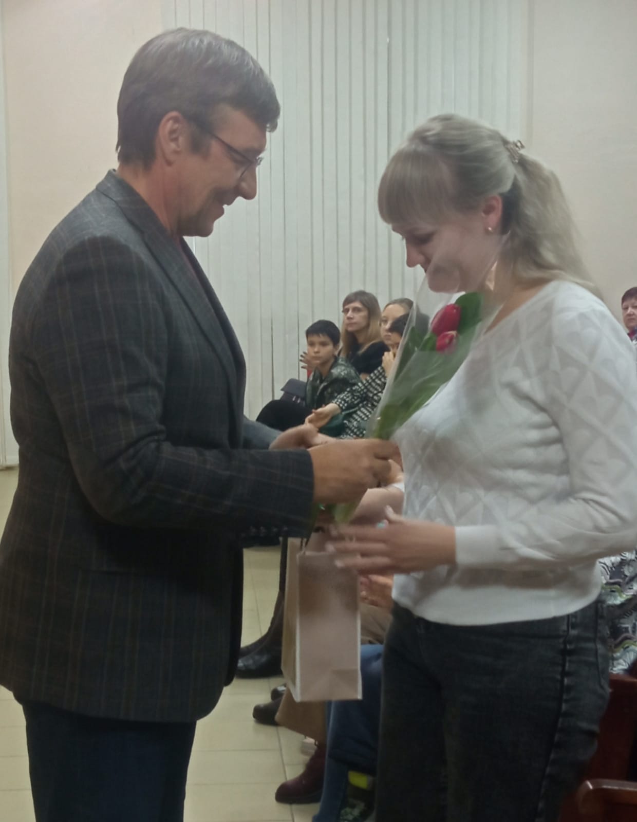 — Незабываемую атмосферу красоты и радости подарили педагоги и студенты Омского музыкально-педагогического колледжа. Спасибо заместителю председателя городского Совета Светлане Михайловне Студеникиной, Максиму Евгеньевичу Комендантову, коллективу сотрудников ДК «Железнодорожник» за помощь в организации поздравления женщин, — поблагодарил Андрей Никитин.