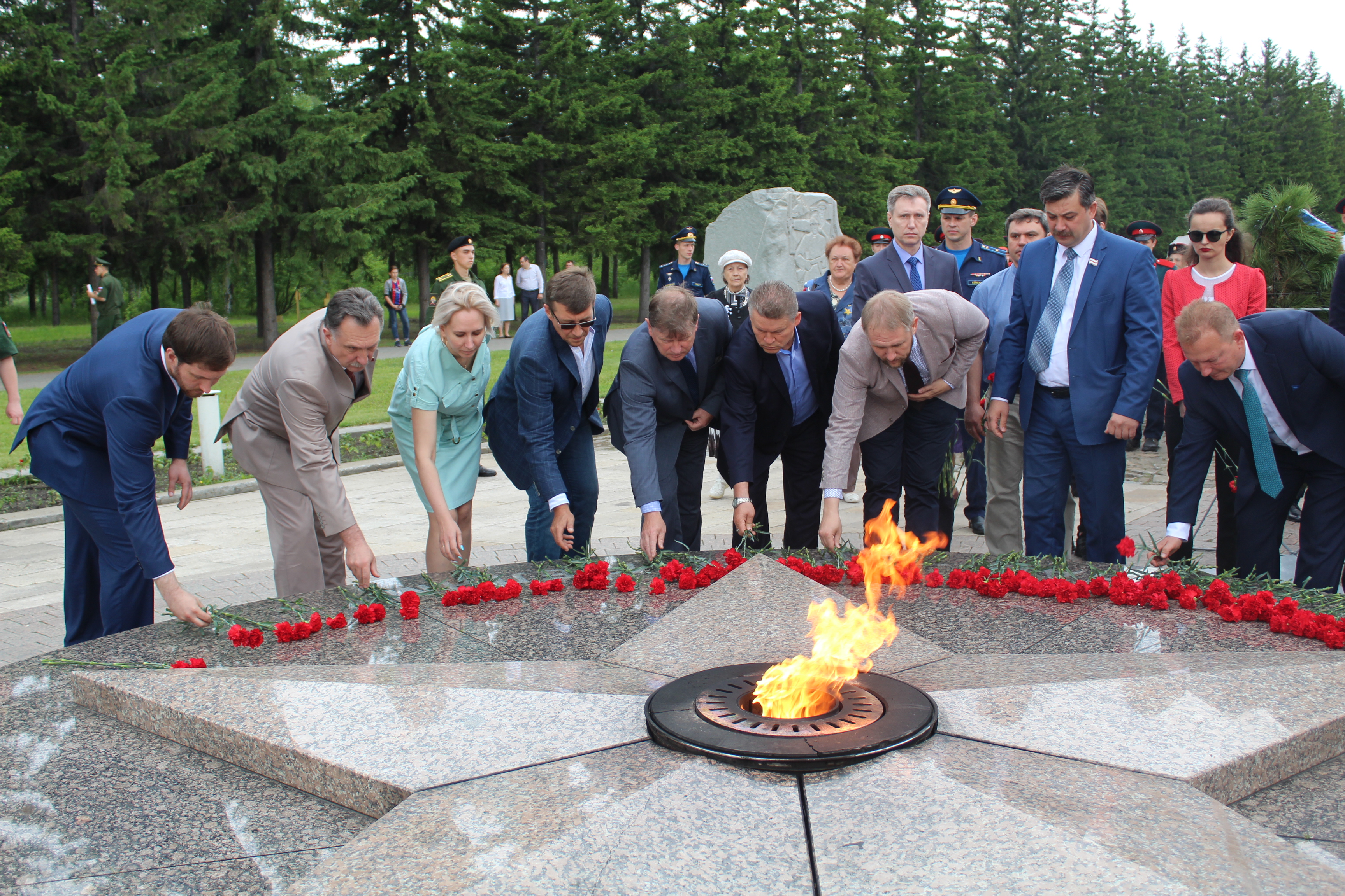 Утром, 22 июня, депутаты Горсовета отправились в Парк Победы, чтобы почтить память героев Великой Отечественной войны. Здесь прошла торжественная церемония возложения цветов к памятникам и Вечному огню.