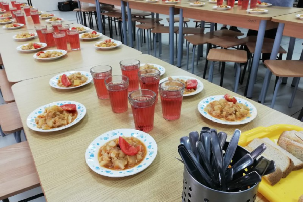 Так, на завтрак школьникам предлагают омлеты, каши и творожные запеканки с клюквенным или абрикосовым соусом, чай с черной облепихой и медом. На обед — супы (включая уху с крупой, рассольник ленинградский и щи из свежей капусты), плов, голубцы и другие основные блюда, из напитков — компоты, включая ягодные — клюквенные, вишневые и другие.