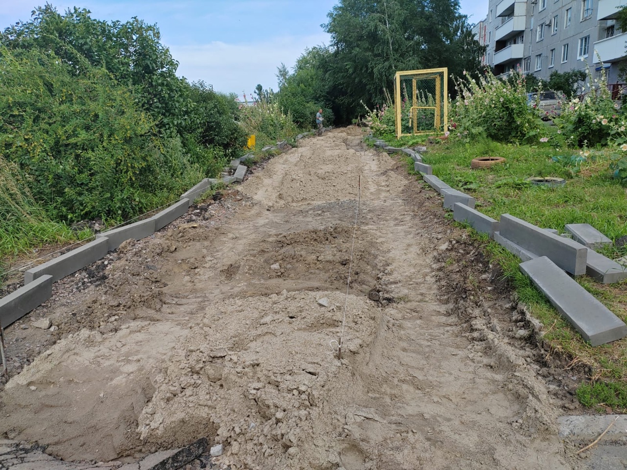 На данный момент строят тротуарную дорожку, которая ведет в новый сквер и проводят освещение, которого не было. Жители дома благодарят депутата и его помощницу за содействие в воплощении их идеи.