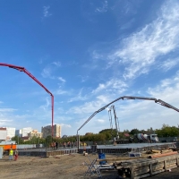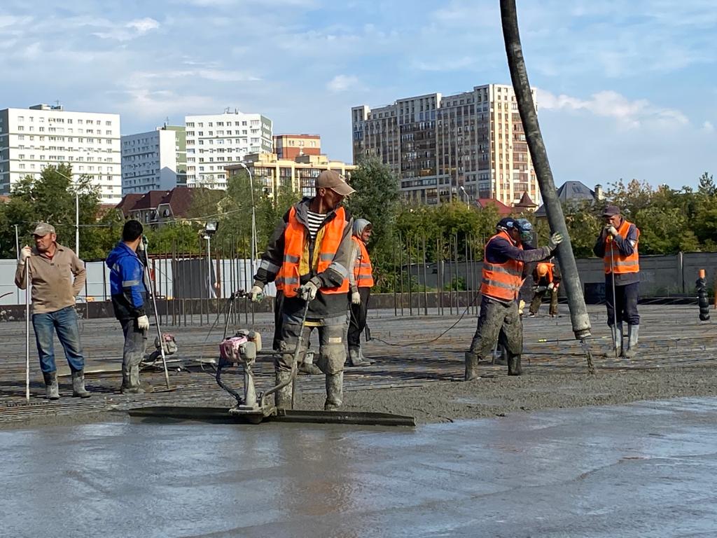 С четырех часов утра на территории «Зеленого острова» в Омске заливали площадку под будущее 65-метровое колесо обозрения в современном парке аттракционов. Работы ведет компания «Омск Сайдинг Инвест». Ее гендиректор Хусайн Закриев рассказал, что всего планируется залить 1200 кубов бетона. Для этого задействовали 142 единицы спецтехники.