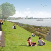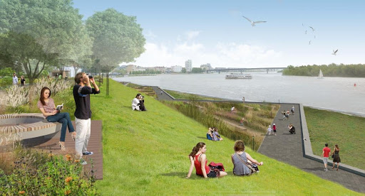 Вдоль реки появятся большая смотровая площадка, трибуны и велодорожки.
