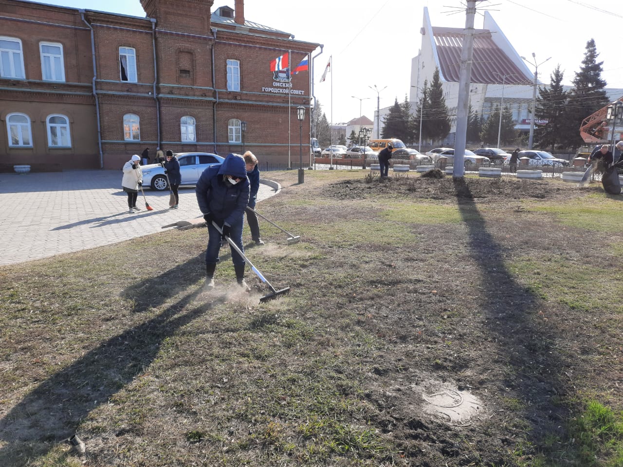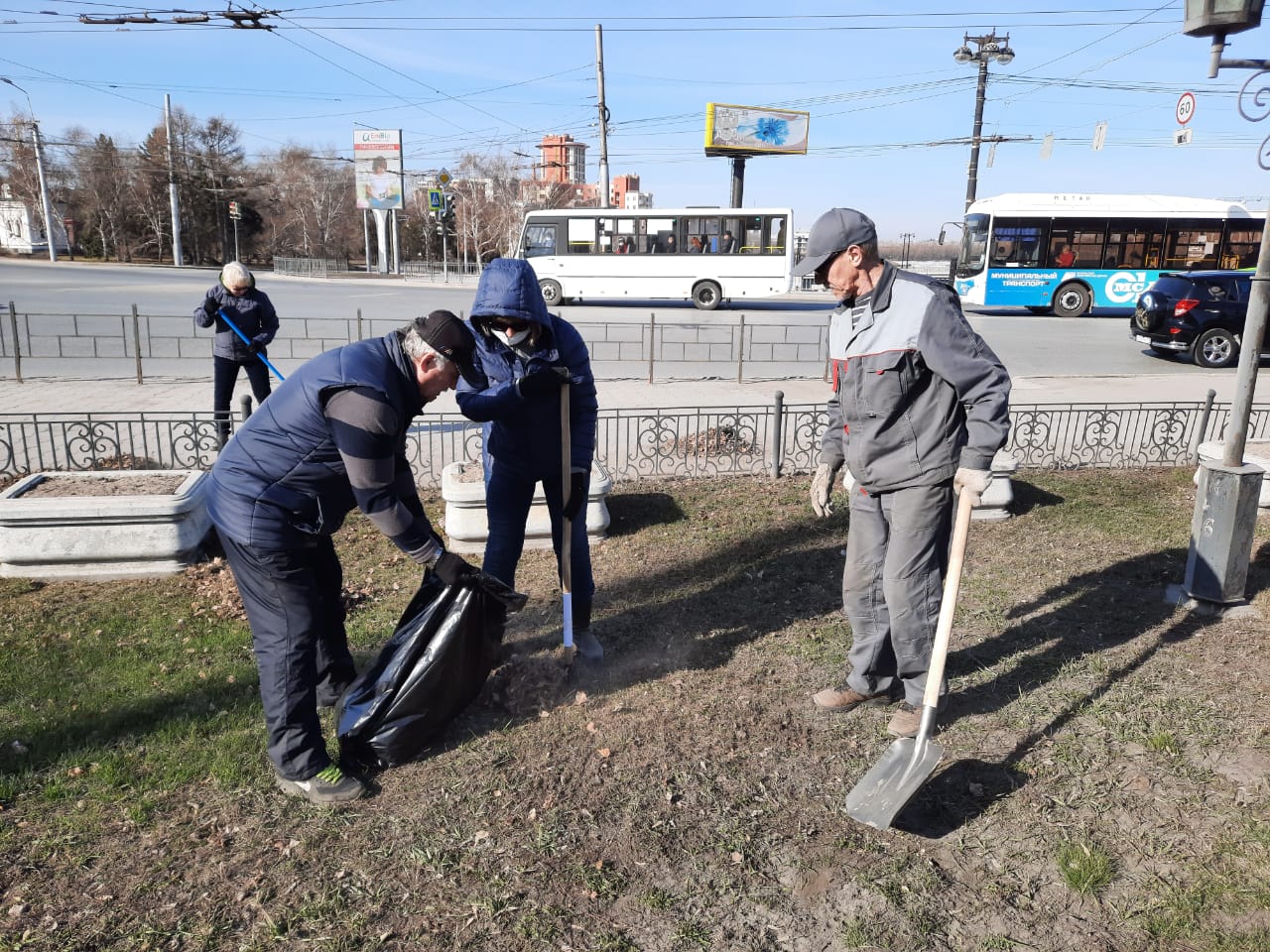 Сотрудники Омского городского Совета поддержали акцию и убрали с территории прошлогоднюю листву, скопившийся за зиму мусор.