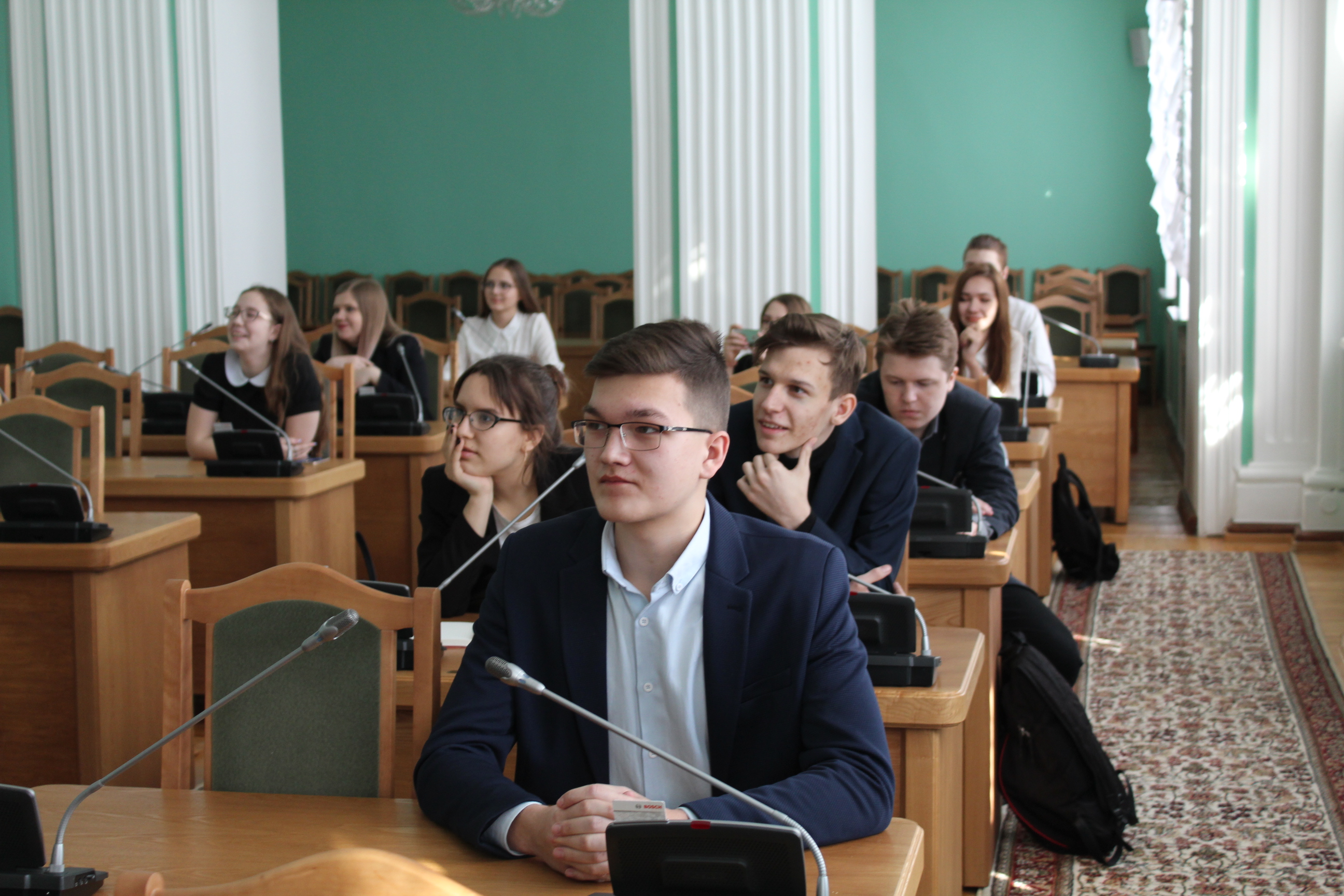 Омский городской Совет сегодня посетили учащиеся 12 гимназии. Для них по историческому зданию экскурсию провела консультант управления обеспечения Ольга Кокина, а затем они заняли места депутатов и поучаствовали в импровизированном заседании. На вопросы школьников ответил депутат Олег Афанасьев. Он отметил, что в зале 21 школьник, кворум имеется, и разговор начался.