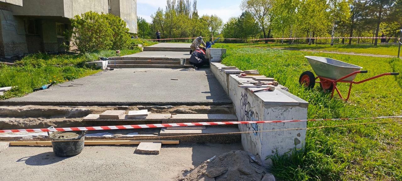 В преддверии великого праздника Победы идет восстановление лестницы у дома № 7. С просьбой о ее ремонте к депутату Ивану Котенко неоднократно обращались жители.