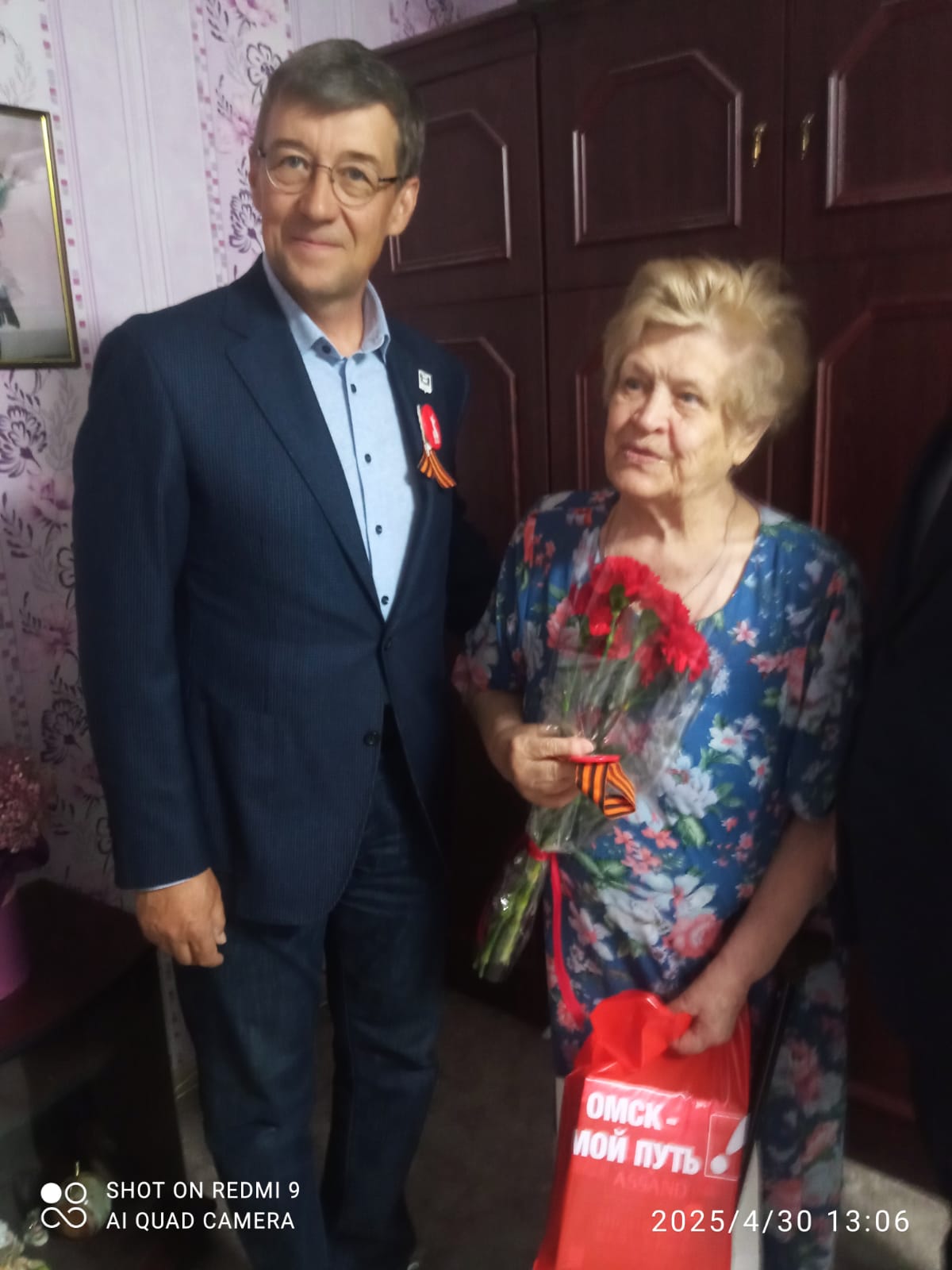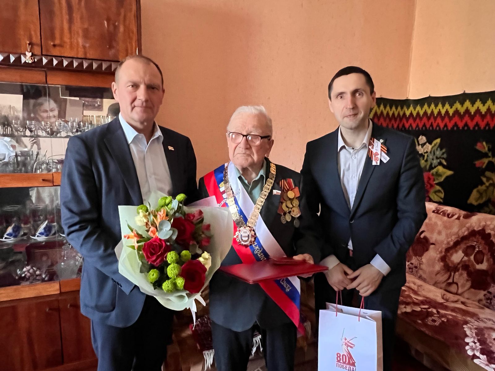Парламентарии поздравляют их с праздником 9 Мая и вручают ветеранам атрибуты звания Почетного гражданина Омска.