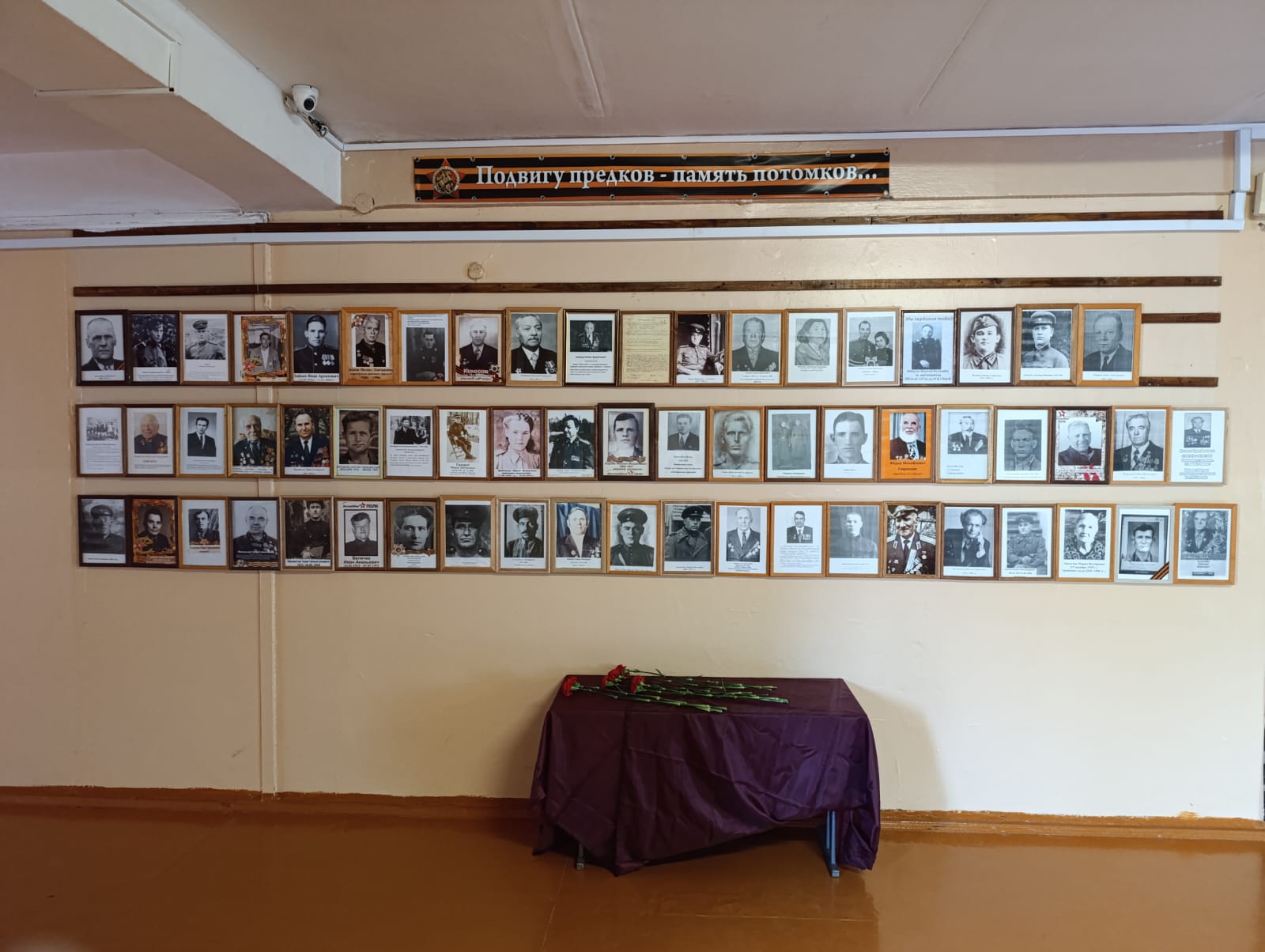 Оформление такой экспозиции стало ежегодной традицией школы. Все портреты — это не фото из архивов, а фотографии из семейных альбомов, портреты прадедов, и родственников учащихся школы. За каждой фотографией стоит отдельная судьба и личность. Стена Памяти — это благодарность тем, кто защищал нашу Родину в годы войны.