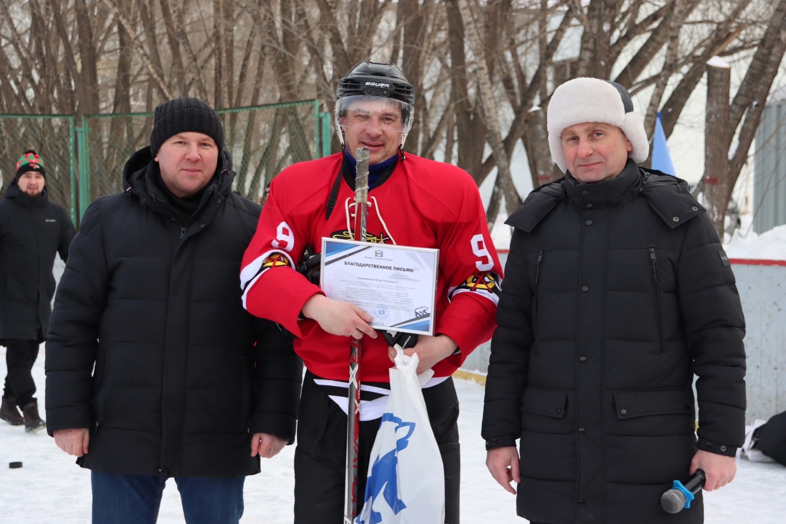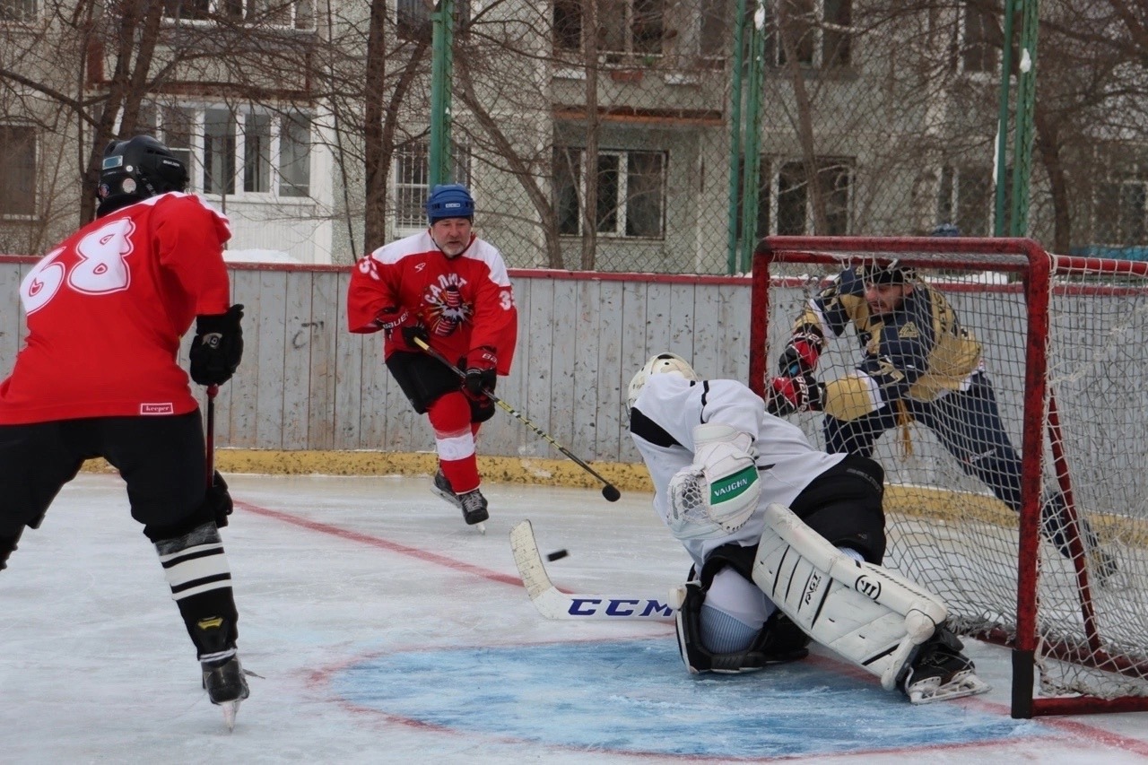 В честь Дня защитника Отечества на левобережье состоялся хоккейный турнир взрослых и детских дворовых команд. Настоящие ледовые баталии развернулись на площадке корта, который расположен у дома 12/3 по ул. Рокоссовского.