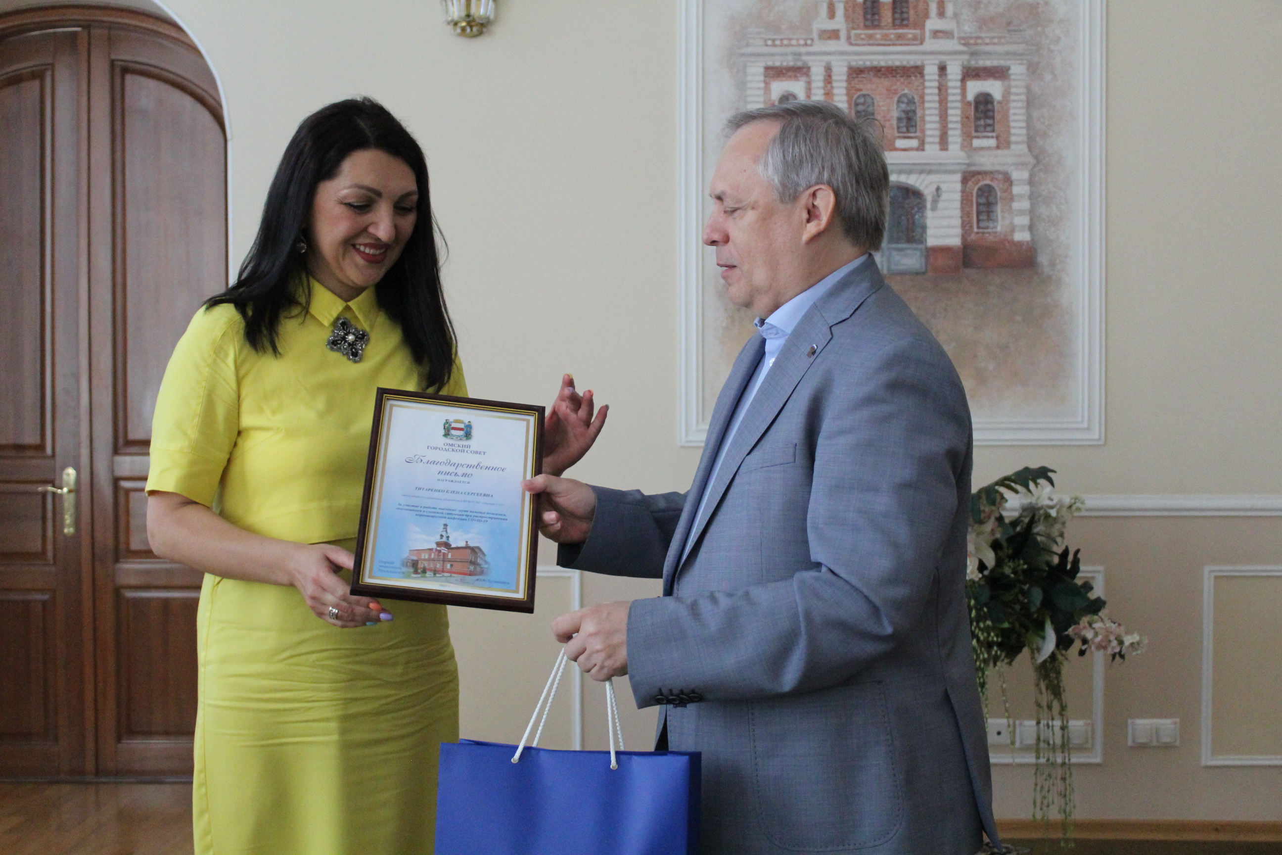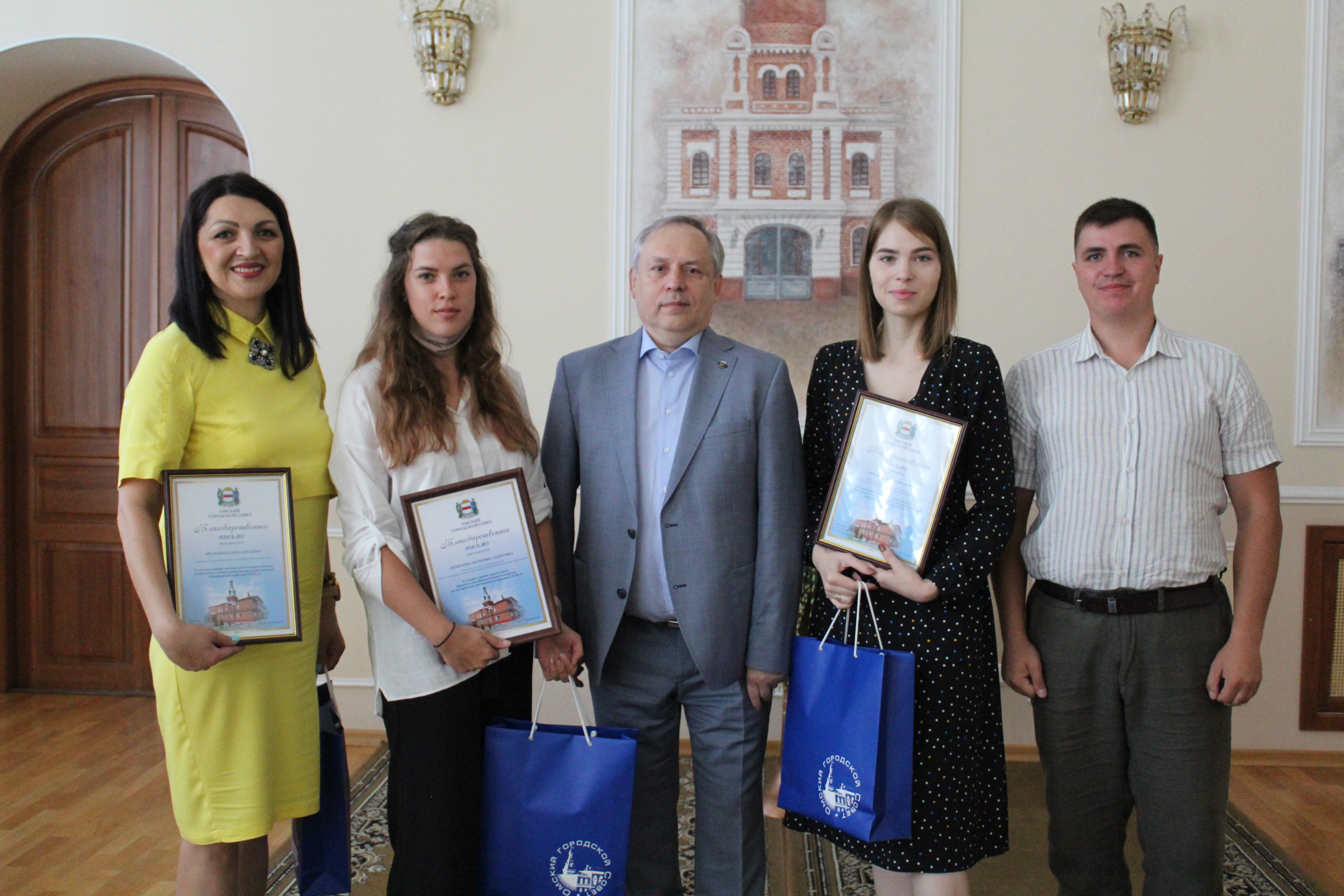 Сегодня первый вице-спикер Омского городского Совета Юрий Тетянников в торжественной обстановке вручил благодарственные письма волонтёрам из организаций «Региональный центр по проведению молодёжных мероприятий», РЦ «Молодёжь в движении» и студенческое общежитие «Омский ГАУ» за активную помощь пожилым людям во время ковидных ограничений. Волонтеры доставляли одиноким пенсионерам и ветеранам продукты и медицинские препараты, оказывали консультационную поддержку и другую необходимую помощь.